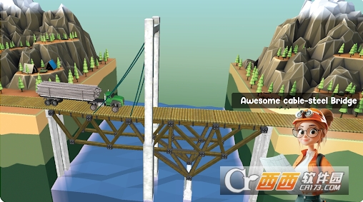 《造桥模拟器》是一款集工程设计、物理模拟与解谜挑战于一体的休闲益智类模拟经营游戏,以匠心造桥,挑战物理极限为核心,为玩家带来兼具创意与策略的沉浸式体验。游戏中,玩家将化身桥梁工程师,需根据不同关卡的地形、承重要求与预算限制,灵活运用木材、钢材、钢丝绳等多样建材,通过拖拽、切换材料、删除调整等简洁操作,设计并搭建出坚固耐用的桥梁。建造时可切换2D视角精准规划结构,测试时切换3D视角直观观察车辆通行效果,颜色负载指示器还能实时反馈桥梁受力情况,助力玩家优化设计。
