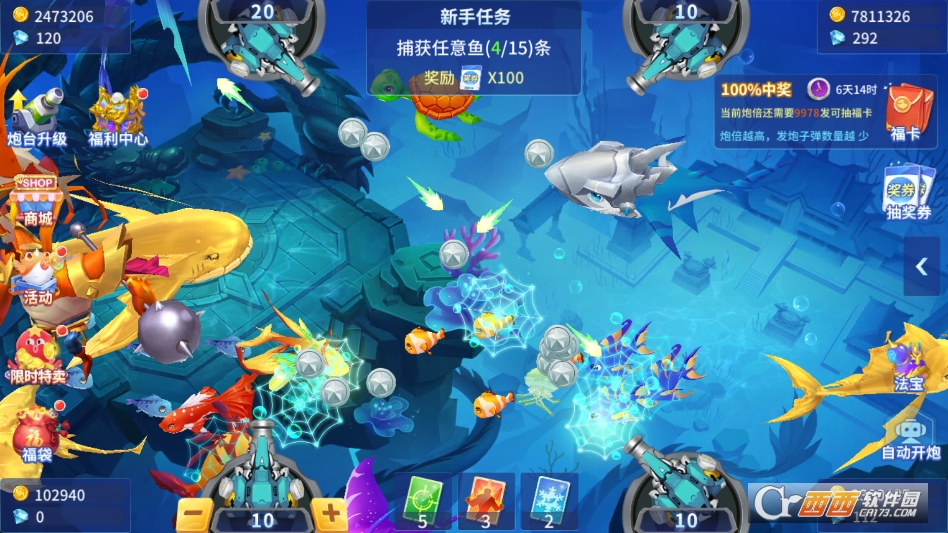 1. 新手初期不要急于开启高倍炮台,先用低倍炮台熟悉鱼类游动轨迹和捕获难度,普通小鱼虽然分值低,但捕获难度小,适合积累金币和经验,等熟练操作后再逐步提升倍率,避免浪费炮弹。