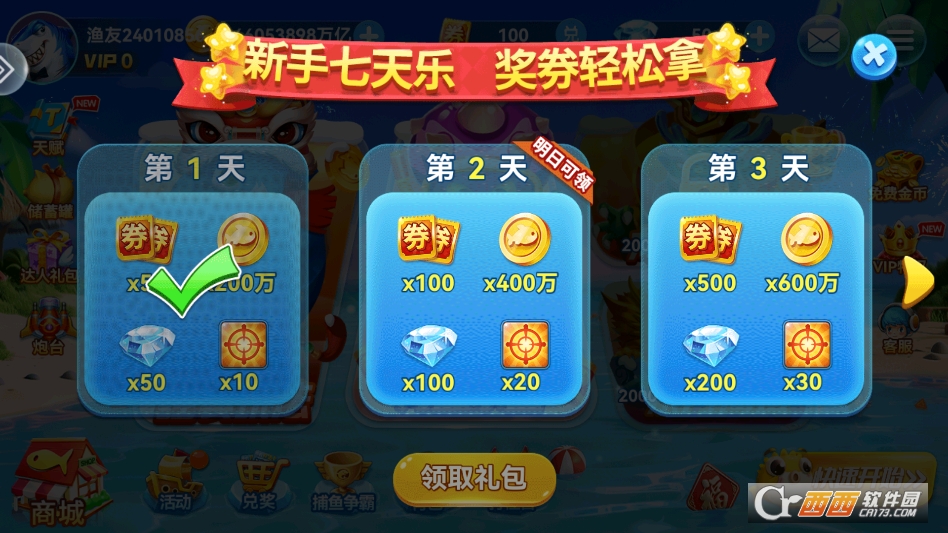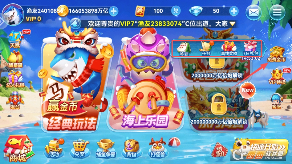 6. 每天按时上线领取礼包码和日常福利,积累足够的道具,冰冻弹、激光炮等道具可在捕获BOSS或密集鱼群时使用,能大幅提升捕获率,轻松爆出满屏金币。