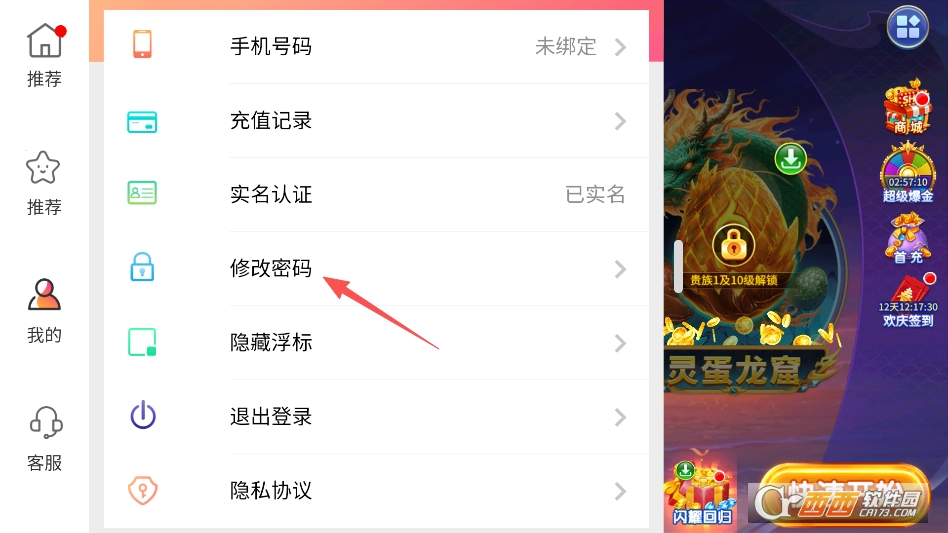打开菜单后,找到修改密码选项即可