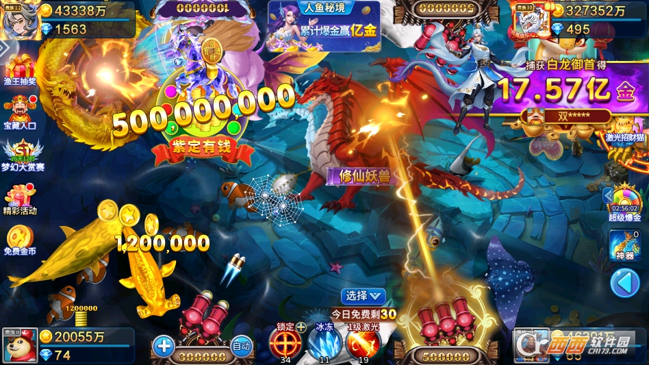 6. 多样鱼类特色,游戏内有上百种海洋生物,从小型热带鱼到巨型BOSS,每种鱼类的分值和捕获难度不同,还有新年限定鱼类,捕获后可获得额外奖励,让捕鱼过程更具新鲜感。