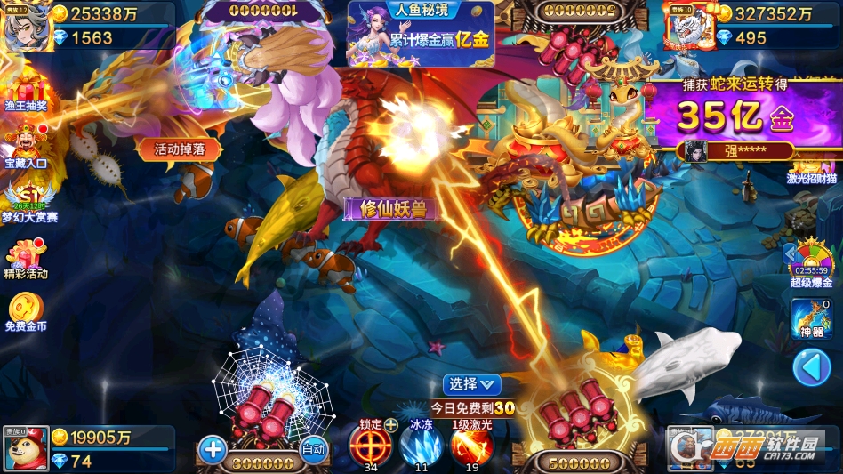 玩家不仅可以体验到紧张刺激的捕鱼乐趣,游戏节奏适中,既有捕获小鱼的轻松惬意,也有追捕大鱼、BOSS的紧张感,每一次开炮都充满惊喜,不用费脑钻研,轻松就能获得满满的游戏快感。
