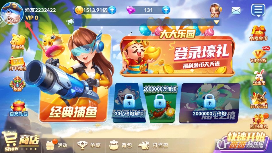 玩法不单调,在核心捕鱼、攒钻石、升炮台的基础上,加入了BOSS挑战、限时活动等元素,还有挂机玩法,兼顾不同玩家的需求,不管是手动捕鱼还是自动挂机,都能轻松攒钻石、升炮台,长期玩也不会觉得枯燥。