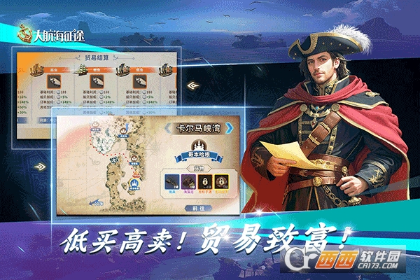 船长招募培养:可在酒馆等途径招募战斗和贸易两类船长,通过升级、升星提升实力,不同船长技能差异显著,如汪直适合高额攻击输出,迪亚士在单体贸易中表现突出。