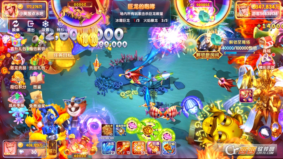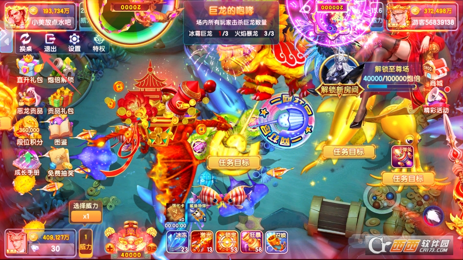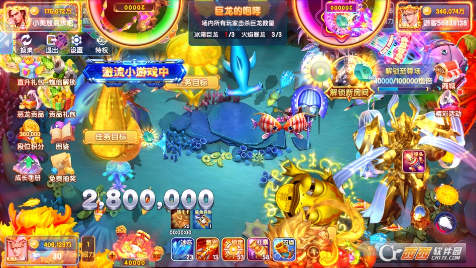3. 学会借力捕捉,留意场上其他玩家攻击却没捕获的鱼,这类鱼大多已经残血,瞄准它们补几炮,基本就能成功捕获,节省炮弹的同时,还能快速获得奖励。