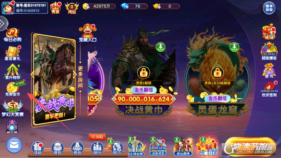 可以点击主页左侧的免费金币按钮