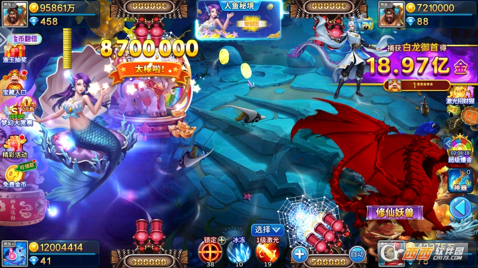 玩法比以前更丰富了,新增的哪吒闹海、神龙秘宝等玩法很有新意,还有多人联机模式,能和全国各地的捕鱼达人同台比拼,趣味性拉满,已经推荐给身边所有喜欢捕鱼的朋友了。