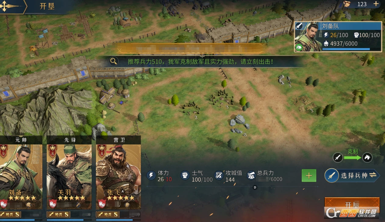 获得大量技能点后,尽可能地升级桃园队的技能。桃园队技能搭配:刘备学习治疗类技能,关羽学习反击、受到伤害造成效果类技能(没有可以学输出、减伤、自身恢复的技能)、张飞学习输出技能。后续可以持续用这个队伍跟随主线做任务。有任务需要攻占沙盘地块时,再攻占沙盘地块,若没有则一直攻打内城土地。