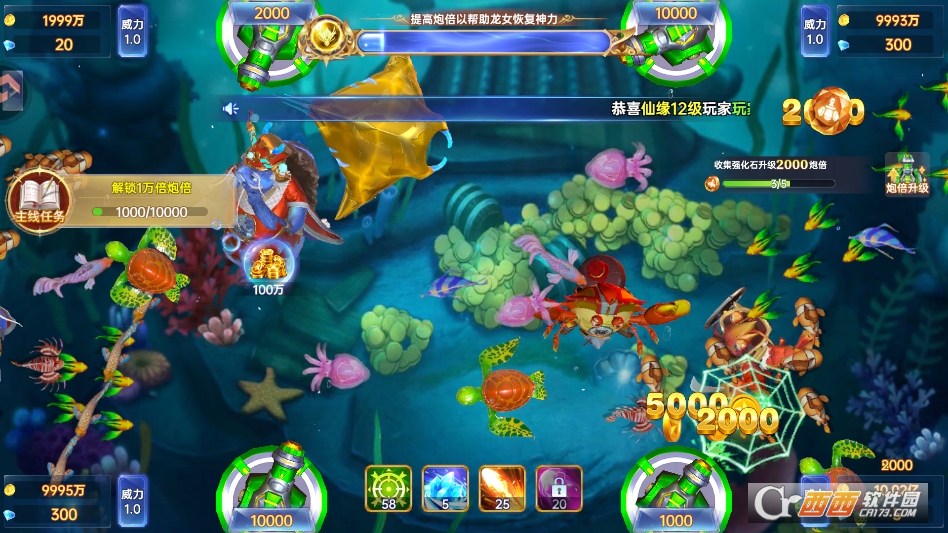新增了多种稀有鱼群和专属炮台,稀有鱼群捕获后能获得大量金币和道具,专属炮台不仅外观酷炫,火力也更强,还能解锁专属捕鱼特效,让捕鱼过程更具乐趣和爽感。