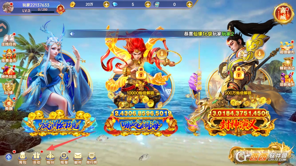 进入游戏主界面,点击下方的活动版块