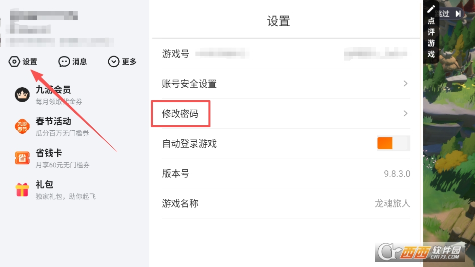 呼出菜单,点击设置按钮,在设置界面点击修改密码即可