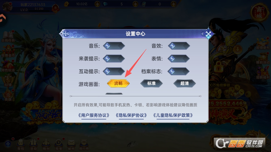 进入设置菜单,点击调低画质帧率即可缓解卡顿问题