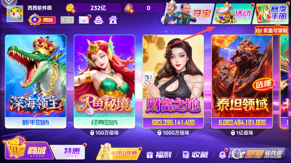 破产了不要着急,回到游戏主界面,点击上方的活动界面
