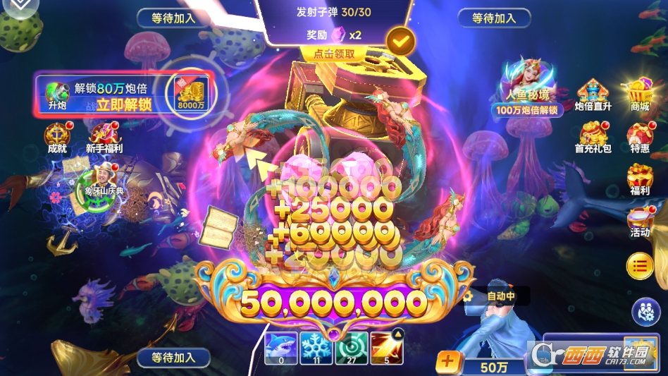 BOSS鱼挑战玩法,游戏内各类BOSS鱼定时刷新,每个BOSS鱼都有独特的技能和血量,玩家可单独挑战,也可和其他玩家协同作战,击败BOSS鱼就能获得大量金币和稀有道具。