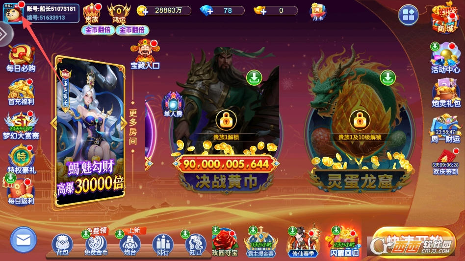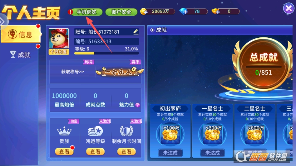 点击游戏主界面的左上角头像
