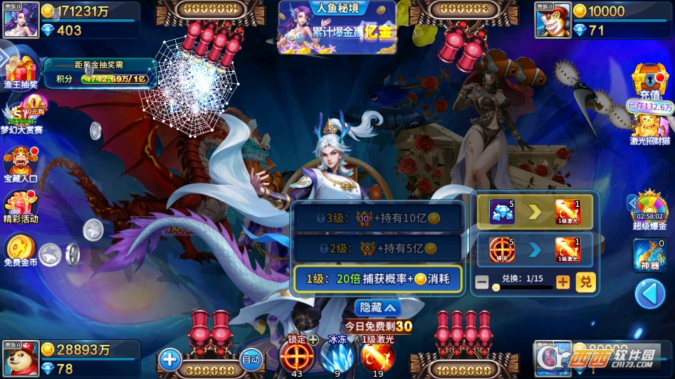 炮台种类超多,而且威力越来越强,解锁升级后捕捉大鱼、BOSS更轻松,还有冰封、追踪等特色道具可以使用,搭配大三元、大四喜等特殊玩法,玩久了也不觉得枯燥。