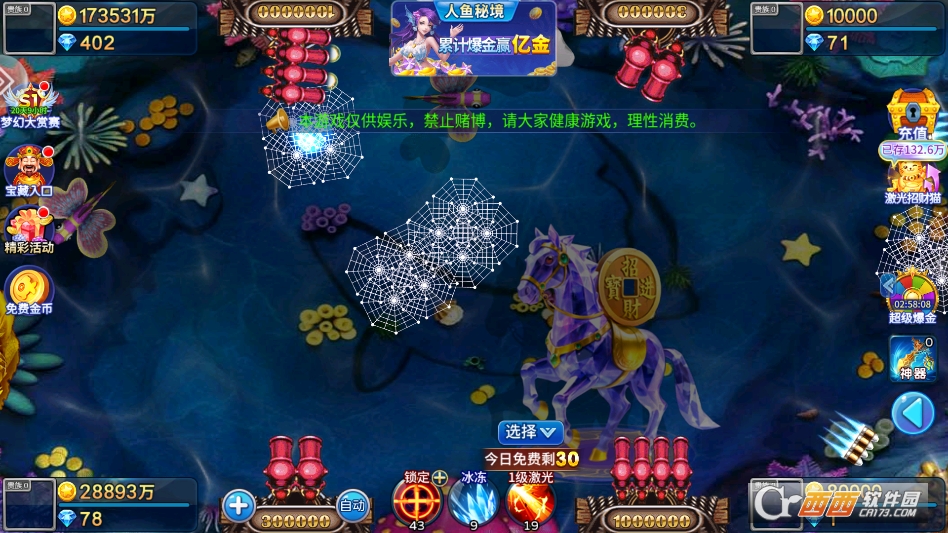 2. 捕捉鱼群时要学会合理调整炮台倍率,小鱼用低倍率炮台,节省炮弹,大鱼、BOSS用高倍率炮台,搭配锁定功能,精准瞄准,提高捕捉成功率。