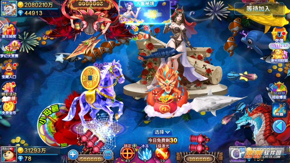 4. 炮台最高上限达到9900.炮台等级越高,威力越强、射程越远,捕获大鱼和BOSS的几率也越高,让玩家享受一炮爆金、全屏捕鱼的畅快体验,满足玩家的竞技快感。