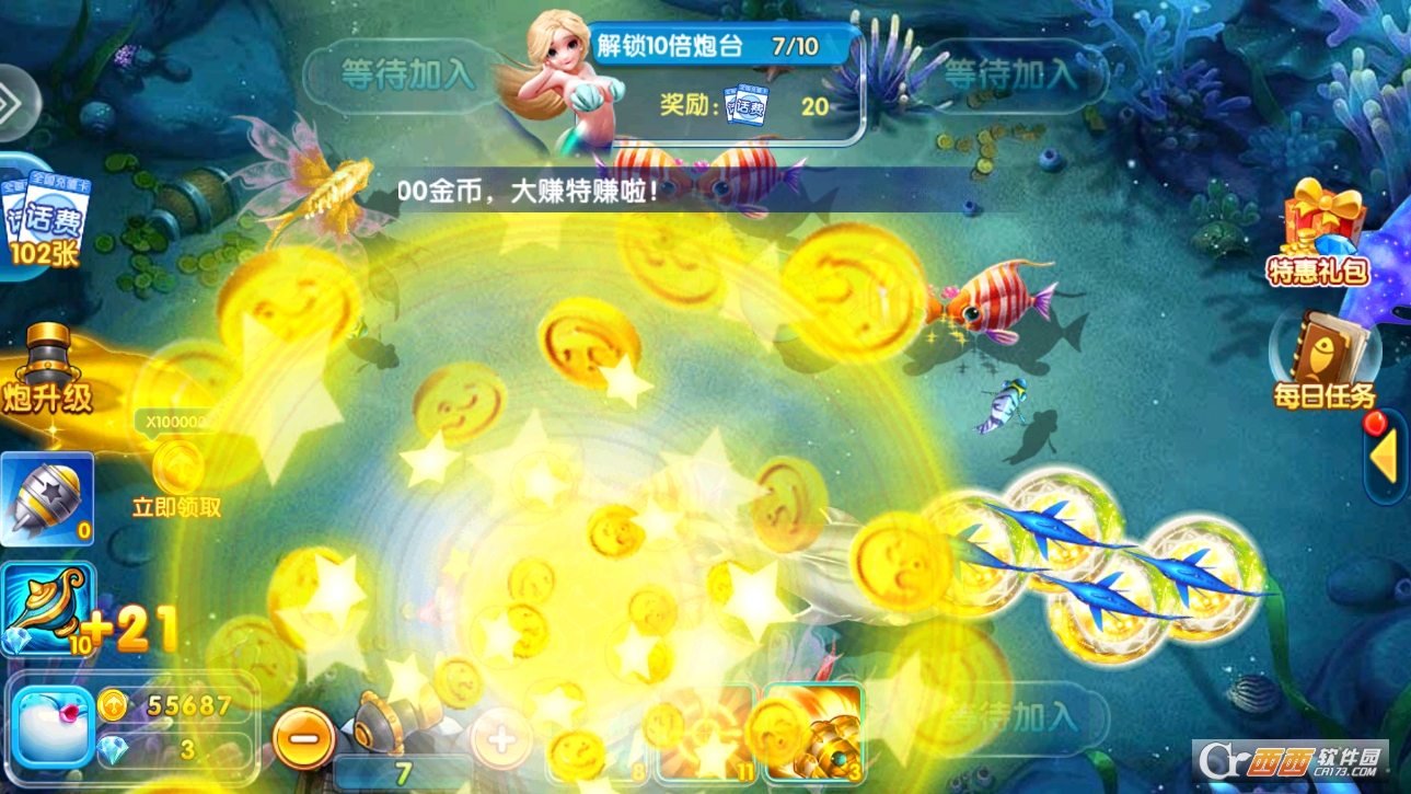 6. 没有金币和炮弹了怎么办。每天登录游戏就能领取免费金币和炮弹,完成日常任务也能获得大量金币和炮弹,捕鱼获得的金币可用来购买炮弹,不用氪金也能持续捕鱼赚红包。