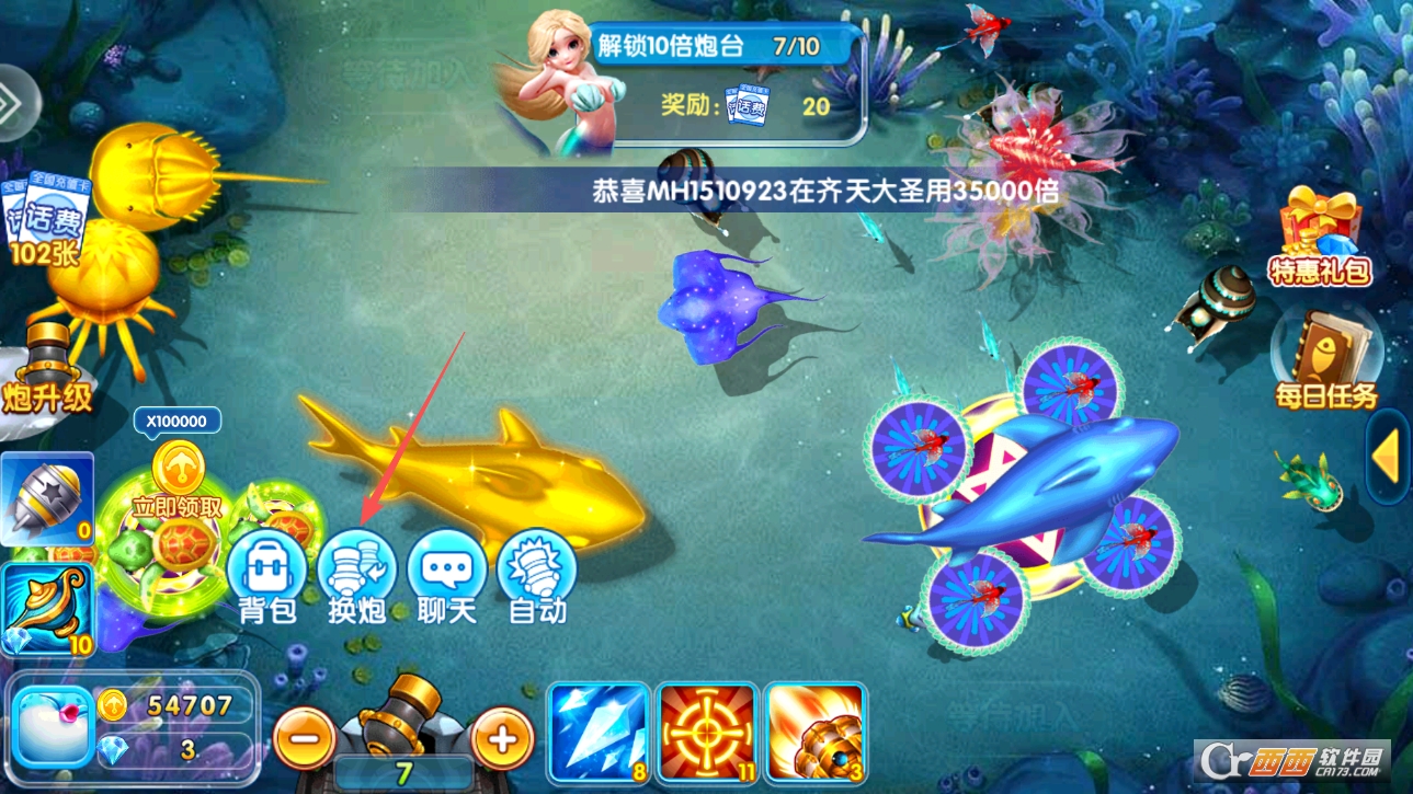 3D海底奇观画面太惊艳了,逼真的海底场景、灵动的各类鱼类,还有炫酷的开炮和捕鱼特效,代入感超强,捕鱼的时候就像真的置身于深海之中。