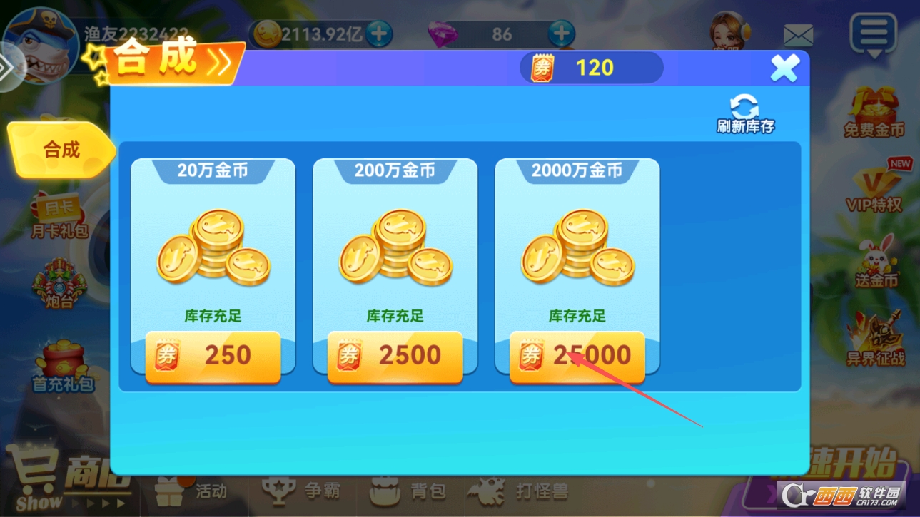 畅快爆装无压力,不管是普通捕鱼还是挑战竞技场、击败BOSS,都有超高的爆装概率,爆装特效炫酷,每次爆装都能获得大量金币、道具和稀有装备,成就感和刺激感拉满。