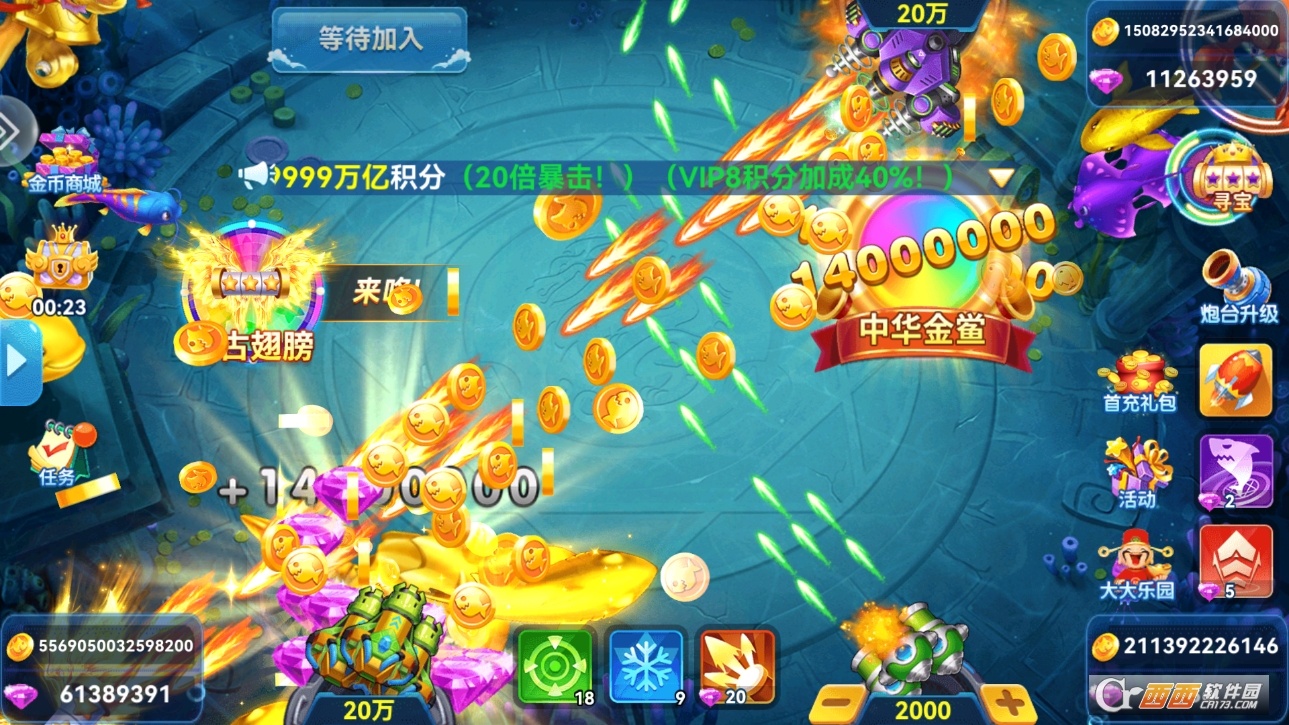3. 多竞技场自由挑战,设有初级、中级、高级等多种不同难度的竞技场,每个竞技场都有专属鱼群和爆装设定,竞技场等级越高,爆装越畅快,刺激感越强。