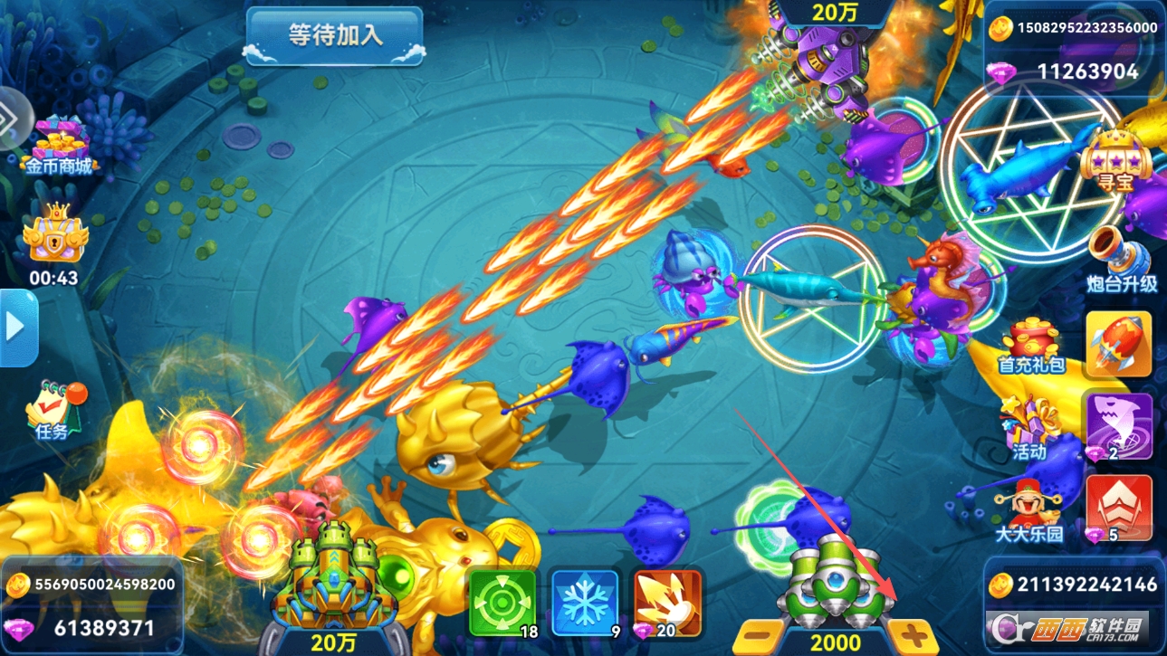 3. 千炮倍率自由调节玩法,支持千炮倍率随心切换,低倍率适合新手熟悉玩法,高倍率适合老玩家冲击高奖励,倍率越高,捕获大鱼、击败BOSS后的奖励越丰厚,赢钱更轻松。