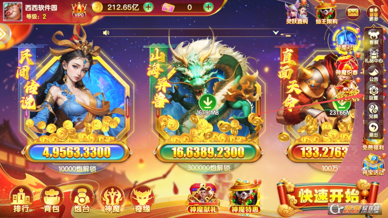 4. 多场次自由选择玩法,涵盖新手场、高级场、竞技场、BOSS场等多种场次,玩家可根据自己的实力和需求选择,新手场适合刷基础金币,高级场和BOSS场金币掉落更多,适配不同水平玩家。