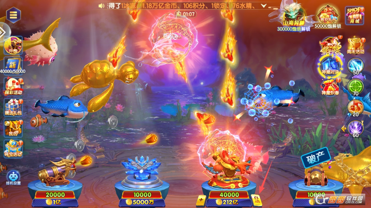 3. 捕鱼辅助玩法,内置实用的捕鱼辅助功能,能帮助玩家锁定目标鱼群、提升炮台威力,减少炮弹浪费,大幅提升捕鱼命中率,不管是捕小鱼还是捕大鱼、击败BOSS,都能更轻松,刷金币更高效。