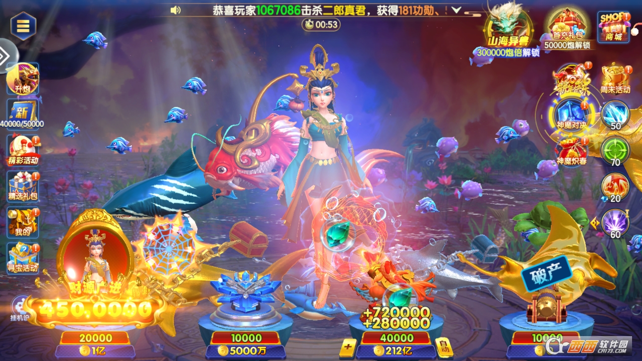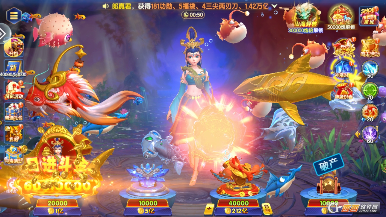 5. 融入传统神话元素,洛神、孙悟空等神话人物化身海底BOSS,造型炫酷、技能独特,击败BOSS能获得丰厚奖励,打破传统捕鱼的单调感,增添游戏的趣味性和刺激性。