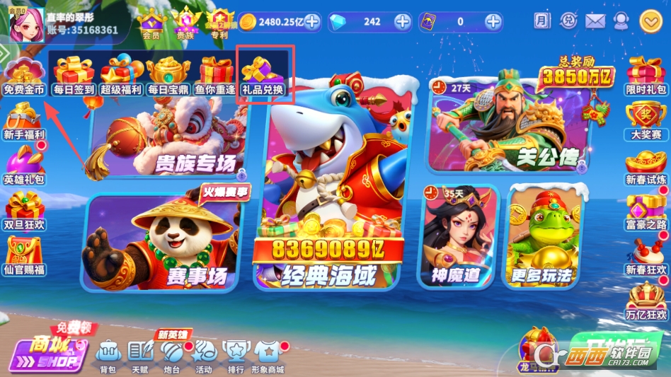 奖励丰厚无套路,不用氪金就能获得大量奖励,每日福利、赛场排名奖励、修仙任务奖励等应有尽有,金币可用于升级炮台、解锁赛场,道具可提升捕鱼效率,助力玩家快速成为最强捕手。