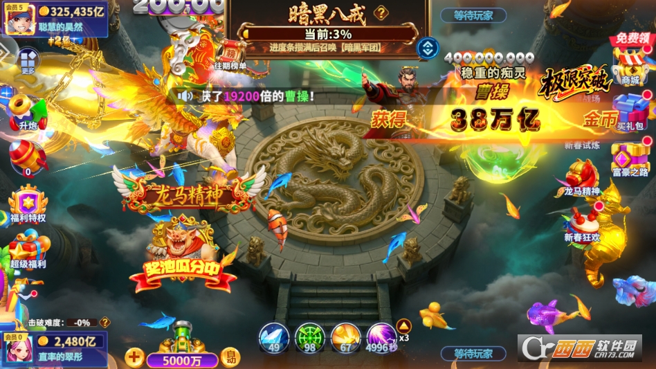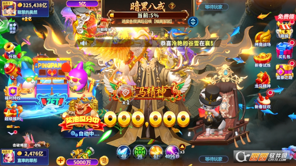 5. BOSS围剿玩法,游戏内定时刷新各类深海BOSS和修仙BOSS,玩家可单独挑战,也可与匹配到的真人玩家组队攻坚,击败BOSS能获得海量金币、炮台材料和修仙道具,助力快速提升实力。