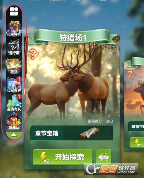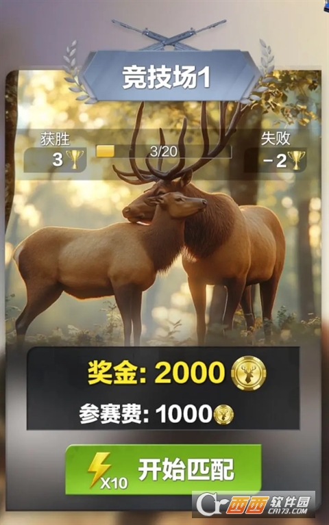 1. 狩猎竞技玩法,这是游戏的核心玩法,玩家扮演狩猎高手,解锁不同难度的狩猎场,参加各类狩猎比赛,在规定时间内狩猎指定数量、指定种类的野生动物,完成比赛就能获得对应的奖励,提升自己的猎手等级。