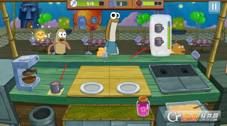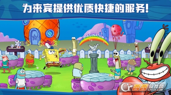 角色养成与装扮:可解锁海绵宝宝、派大星等动画经典角色,为角色购买套装或通过抓娃娃机获取限定装扮,还能对角色不同部位自由搭配,部分装扮附带经营属性加成,助力餐厅更好的运营。