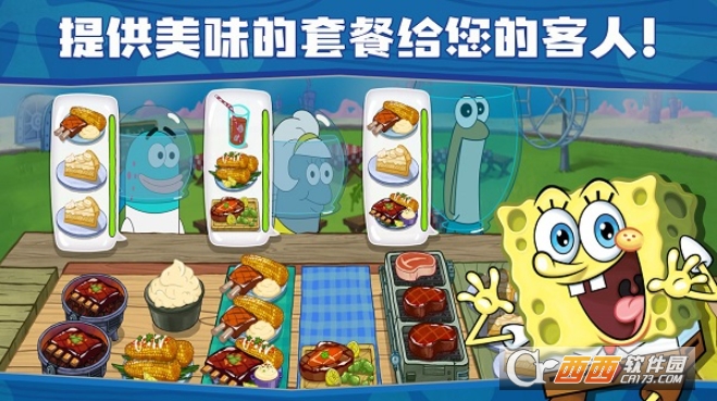 丰富的内容解锁:随玩家等级提升可逐步解锁更多珍稀食材、特色食谱与全新游戏关卡,还能解锁独家的海绵宝宝趣味剧情,探索比奇堡不同地标并开设餐厅分店,玩法层层递进不枯燥。