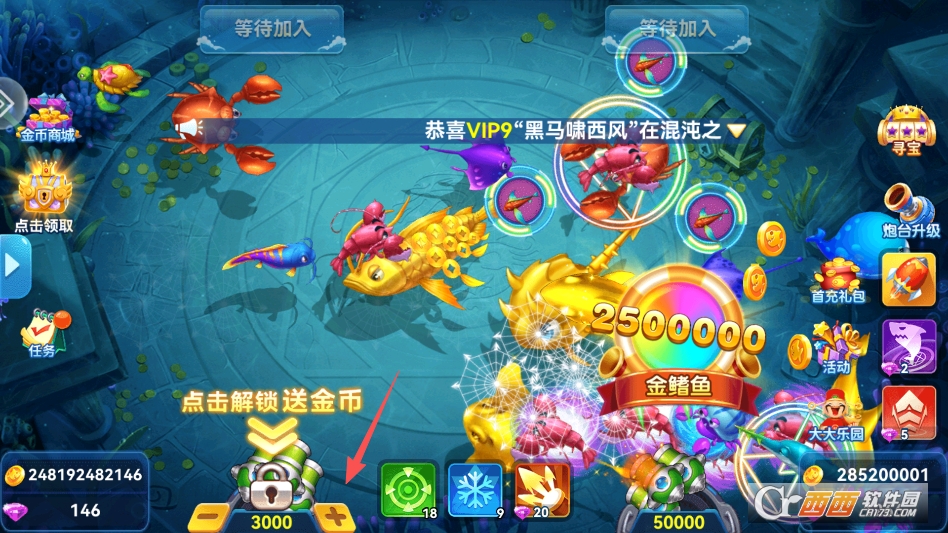 金币爆率超高,打鱼就能获得金币,无破产压力,新手友好,轻松积累财富,解锁炮台和道具。