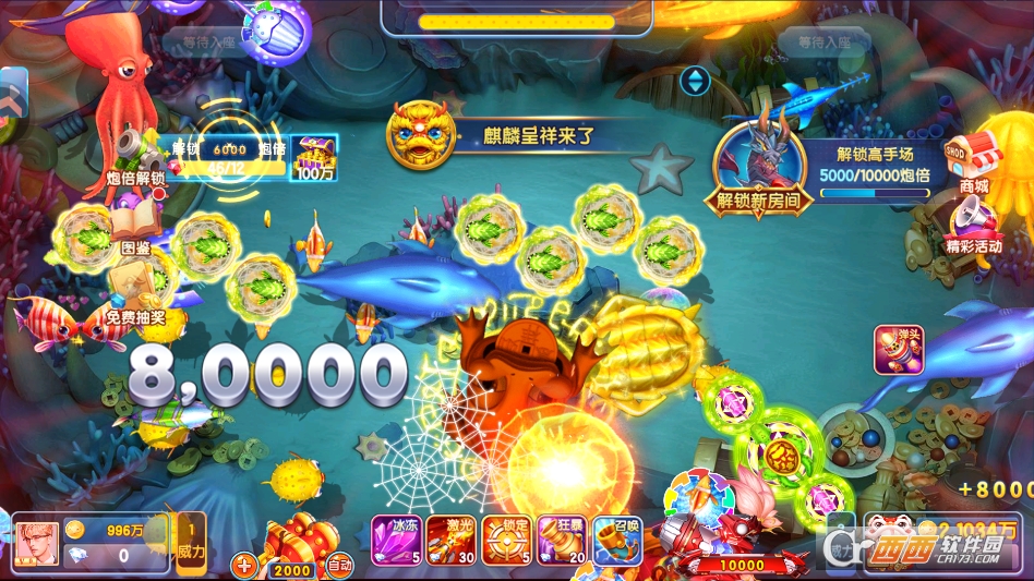 优先使用系统赠送的基础炮台,熟悉不同鱼类的游动规律。