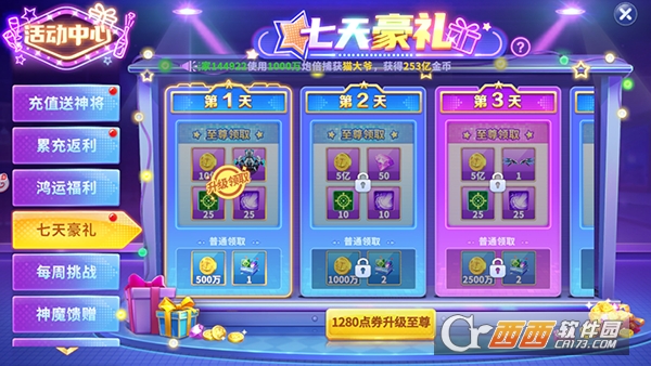 2、七天豪礼,每日签到领取海量道具礼包。