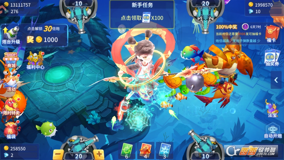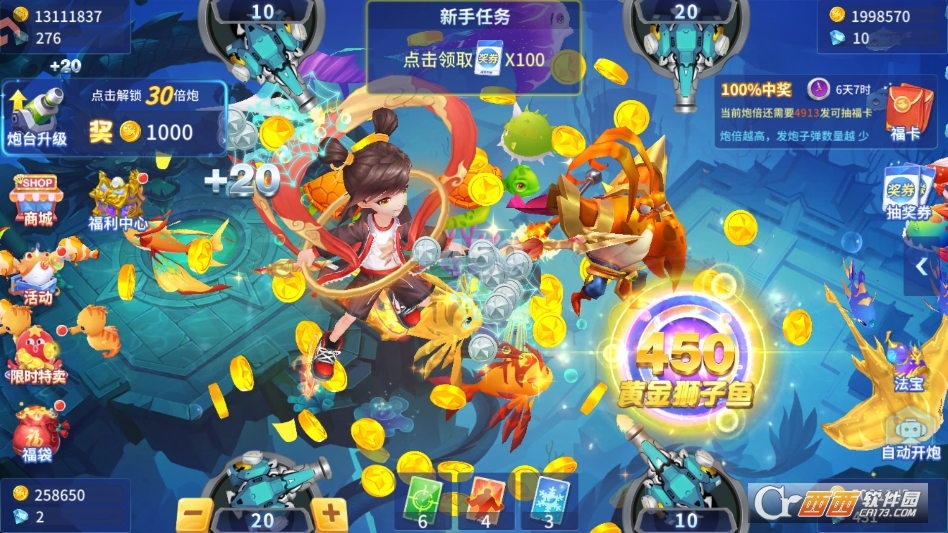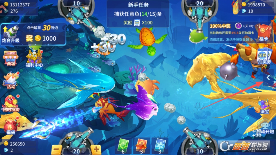 6. 保持40度左右的炮台角度,配合连续射击和左右交替开火的方式,能有效提升命中效率,遇到残血鱼时及时补炮,大概率能捡漏成功,收获额外奖励。