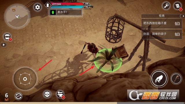 2、进入场景后,通过左侧摇杆进行移动,靠近物资后还可以进行收集。