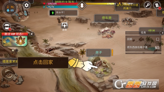 战斗与战利品获取:遭遇部落巨人、鬣狗、老虎等敌人时展开战斗,击败敌人后可搜寻战利品,穿戴背包中的武器能提升战力,同时完成 “放置物资”“制作道具” 等任务推进游戏进程。