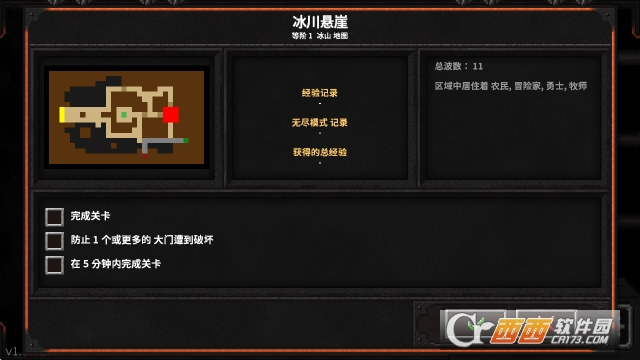 关卡挑战前需确认通关任务,如保护大门、限时通关等,完成任务数量越多奖励越丰厚,选好尖刺、飞镖等陷阱后在敌人必经之路合理布置并升级,紧盯左侧波次时间提示,消灭所有波次敌人即可顺利通关,通关后还能查看经验与完成度统计。