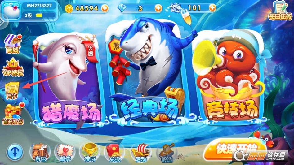 点击打开游戏,可以点击主页左侧月卡按钮