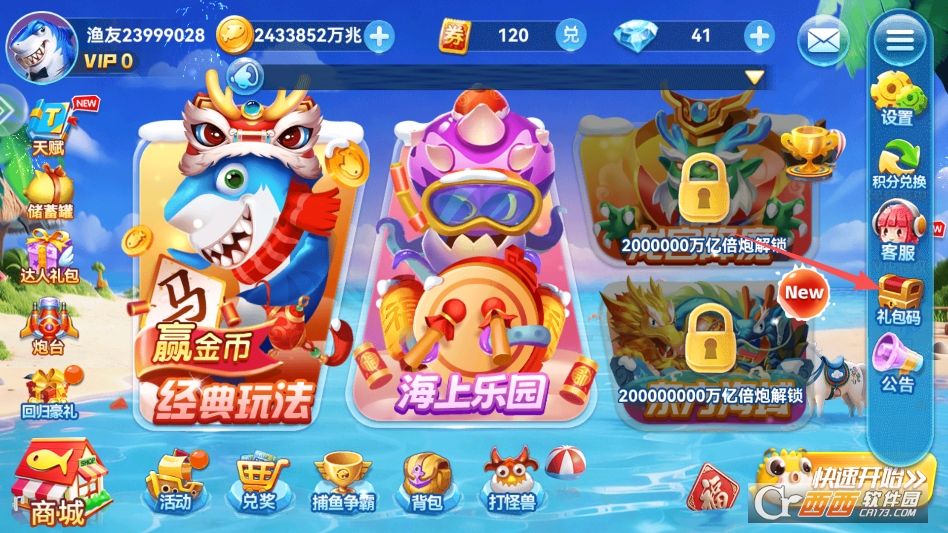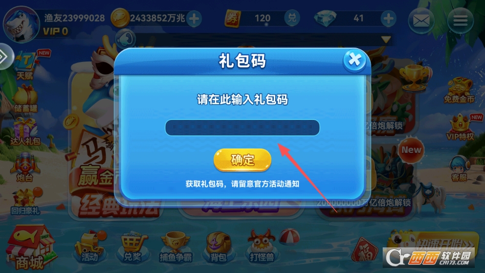 波克捕鱼的礼包码怎么用