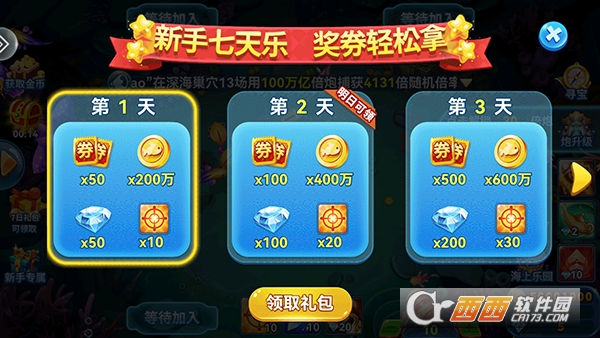 1、进入捕鱼季最新版本游戏后就可以领取新手礼包。
