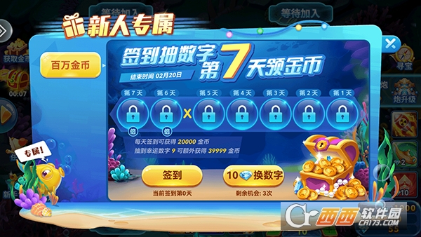 3、新人专属,签到抽数字,第七天领金币。