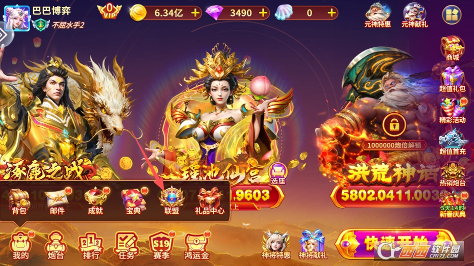 进入游戏左下角我的,在呼出菜单中找到联盟