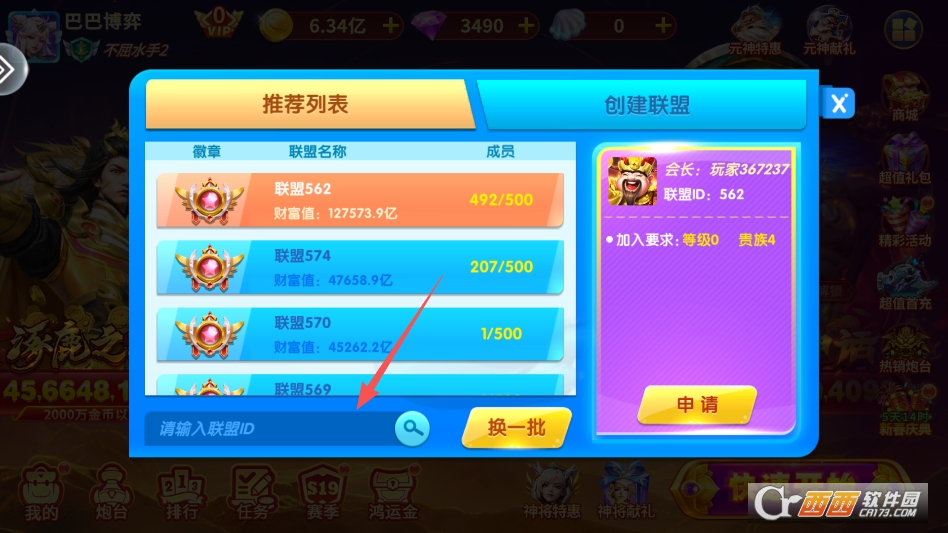 搜索联盟,找到想要加入的联盟,点击申请即可