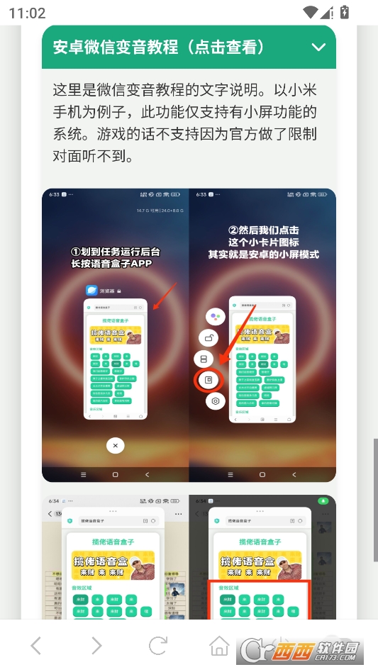需要在其他应用中使用时,可以开启软件内置的悬浮窗功能,让语音盒悬浮在手机屏幕上方,在刷短视频、聊天、直播或玩游戏的过程中,直接点击悬浮窗中的音效按钮就能快速播放。