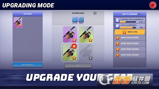6、点击左侧的“装备”即可查看当前装备的钓竿,你可以在这个界面升级钓竿能力。